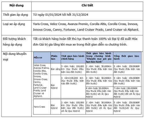 2. Chương trình tặng gói Gia hạn bảo hành dành cho khách hàng mua xe Toyota trong năm 2024:
