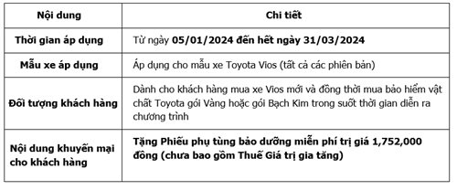 3. Chương trình tặng Phiếu phụ tùng bảo dưỡng cho khách hàng Vios mua bảo hiểm Toyota
